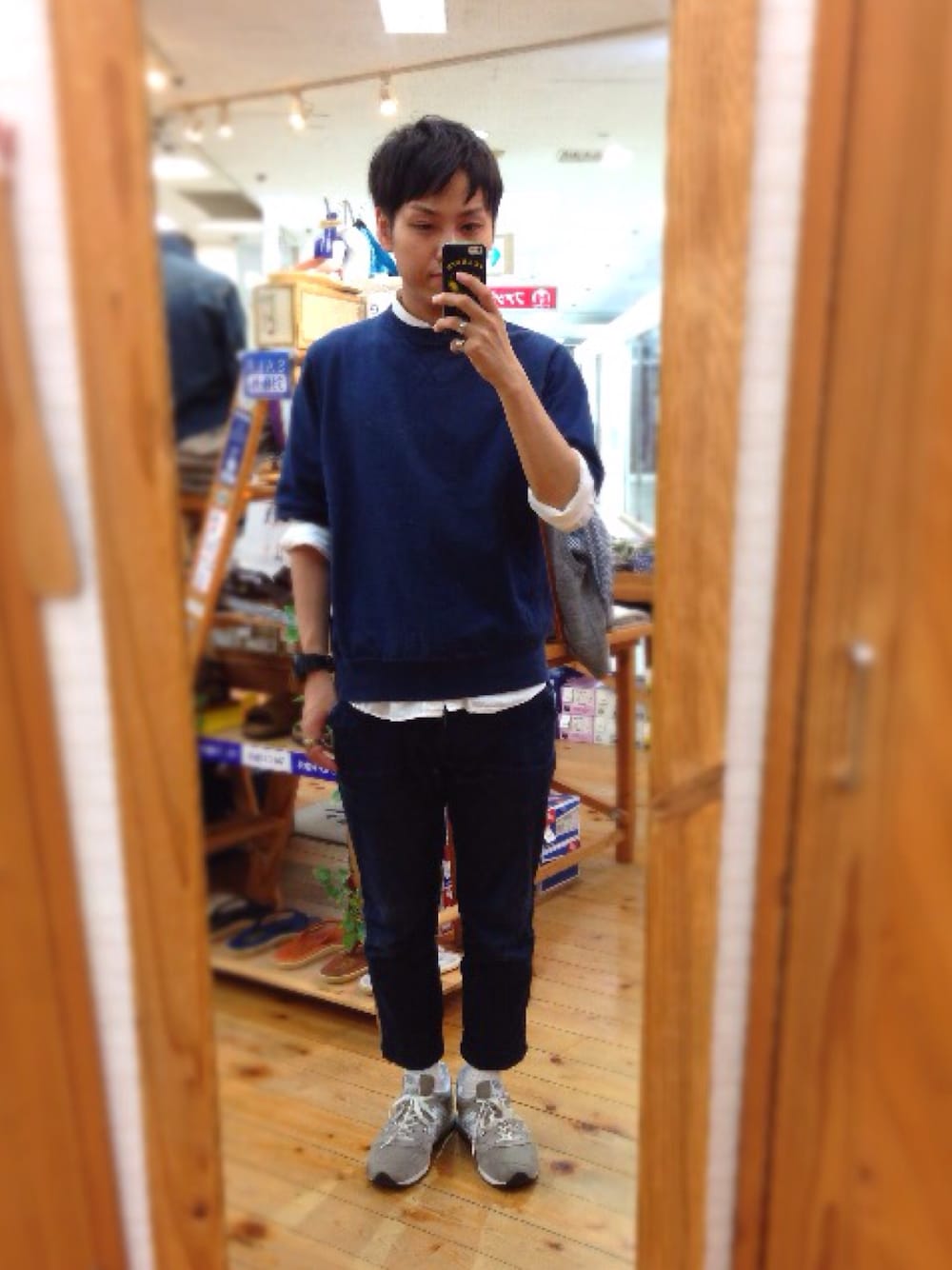 ネイビーのワントーンコーデを意識しました。 長袖をまくってちょい見せになるように。 白がワンポイントです♪