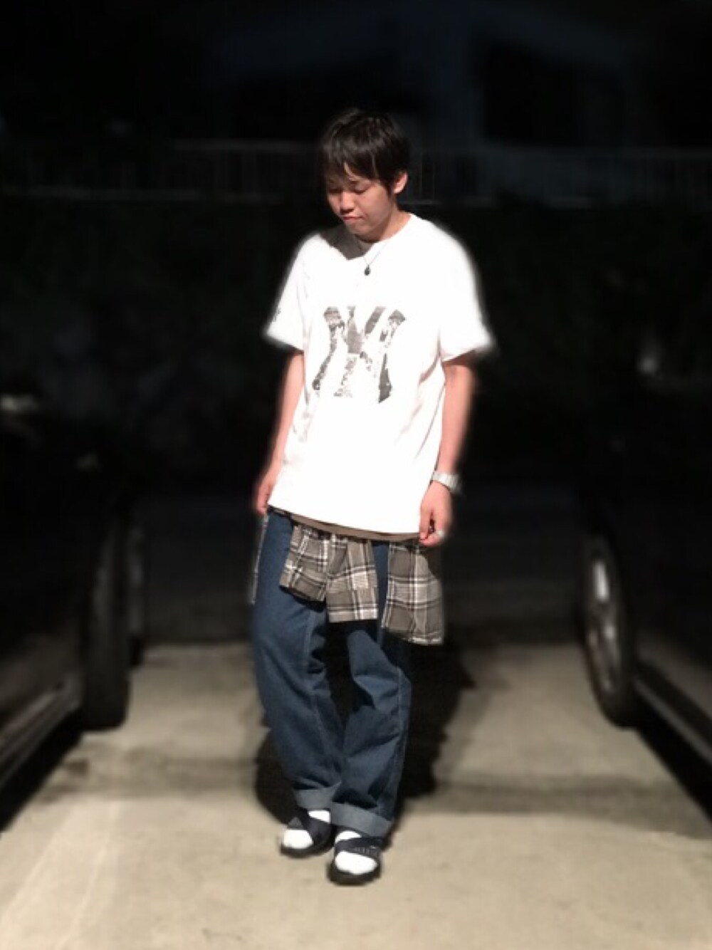 けーちゃんのTシャツ/カットソー「NEWERA TEE SHIRT NEW YORK YANKEES CITY LANDSCAPE MONOCHROME WHITE」を使ったコーディネート