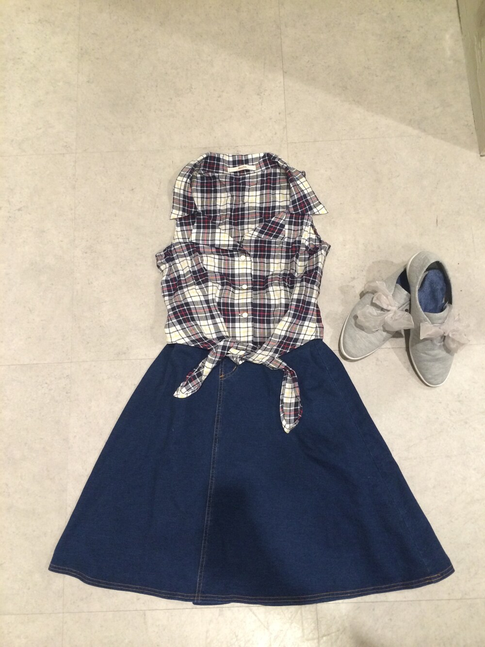 まゅいのシャツ/ブラウス「チェックセットアップベスト」を使ったコーディネート