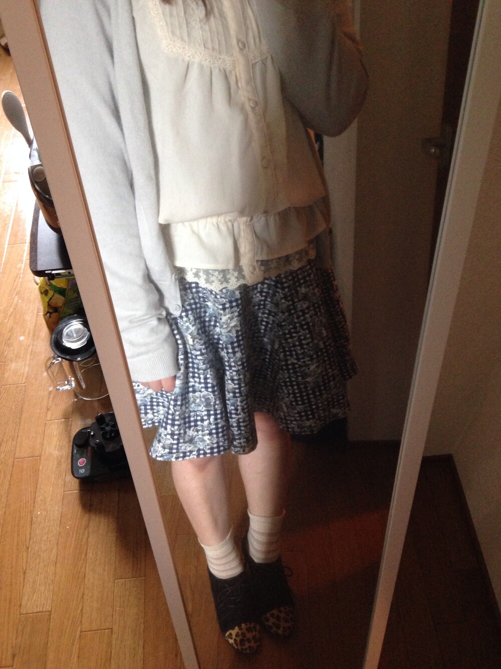 実家に眠っていた花柄フレアスカートを使ったコーディネート。