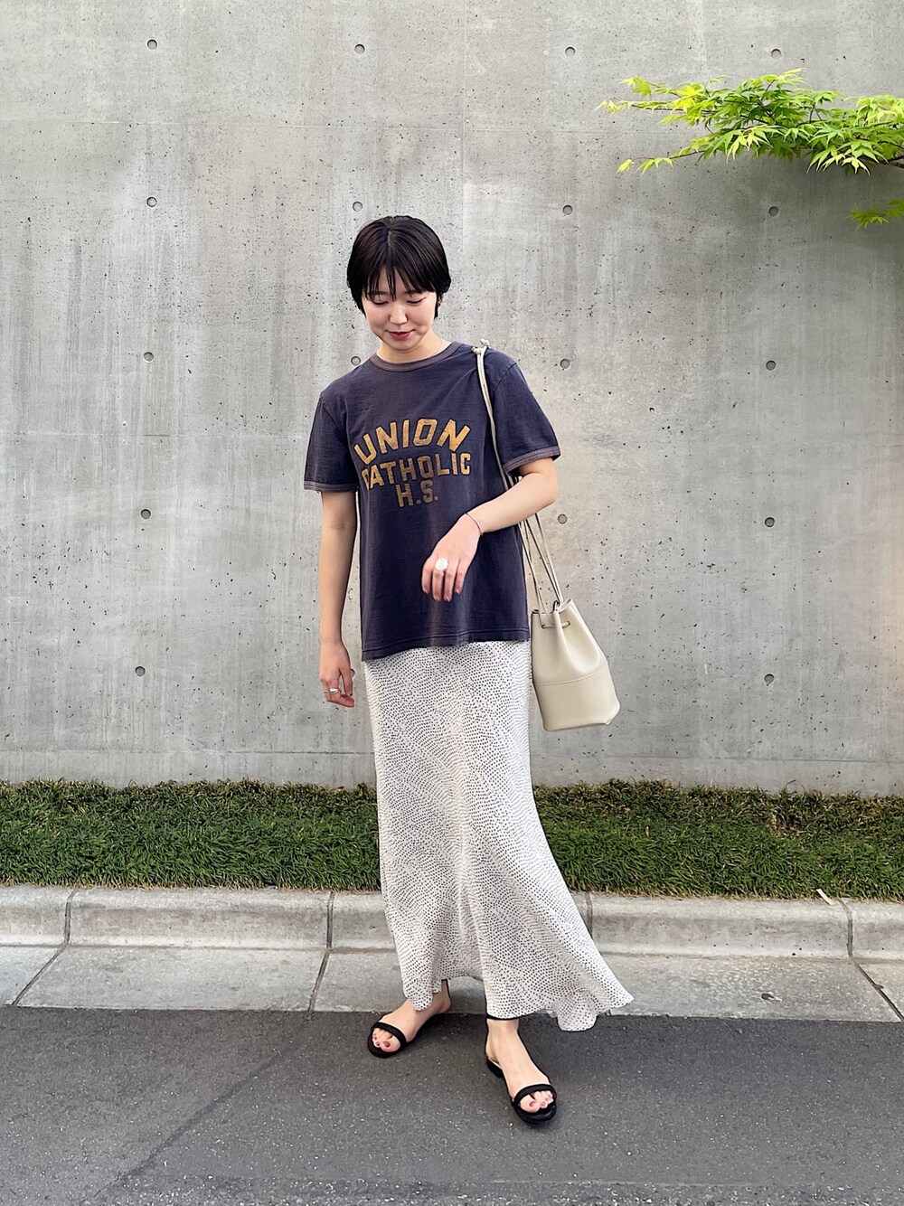 KOSUGI_162cm(SHENERY大宮店)のスカート「レーヨンプリントマーメイドマキシスカート」を使ったコーディネート