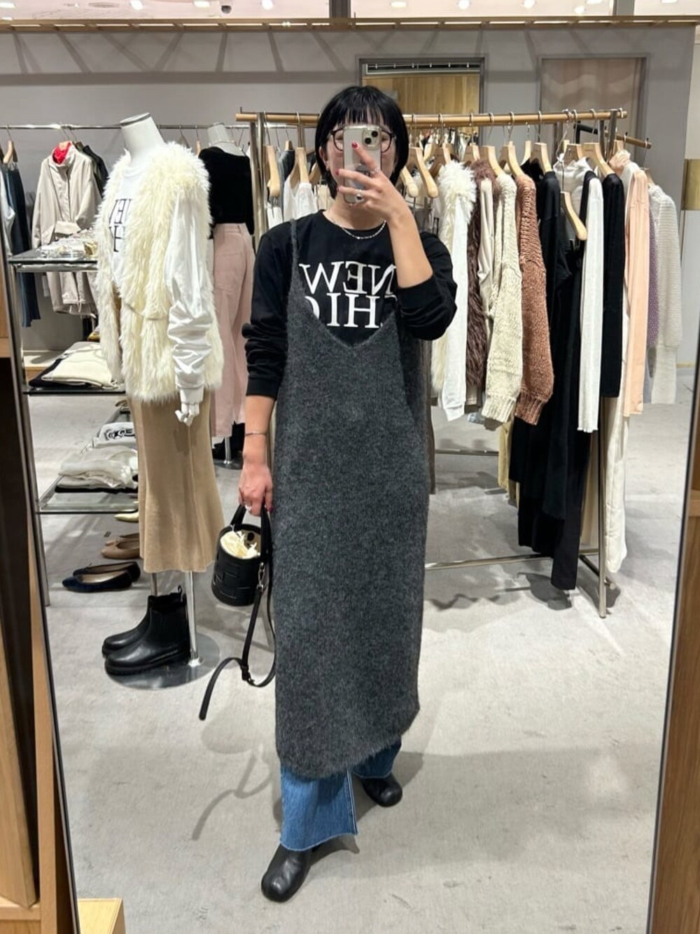 KOSUGI_162cm(SHENERY大宮店)のワンピース「【WEB限定】【低身長/高身長サイズ展開あり】ニットキャミドレス」を使ったコーディネート