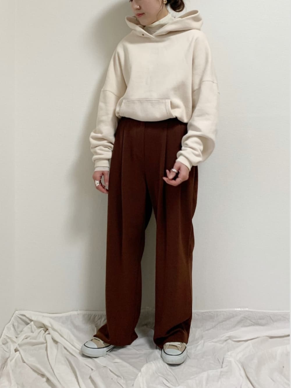 スウェットの下に着たくてtitivateのハイネックカットソー購入しました🌼🌼 首元から見えるハイネックが可愛いです💕