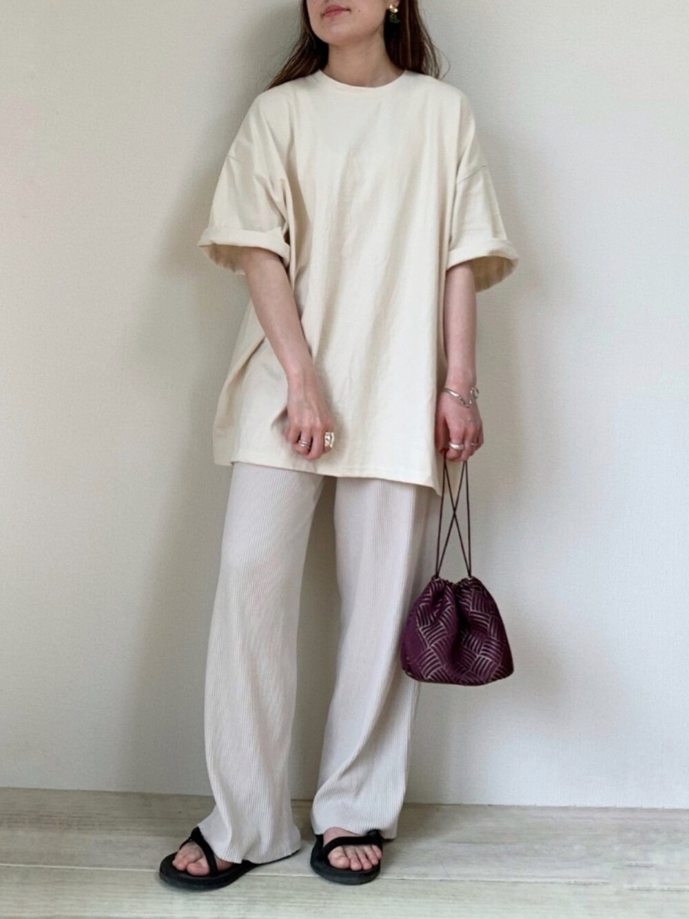 今日もラフスタイル🌵✨ viajのオーバーサイズTシャツをワイドなリブパンツに合わせてみました❣️