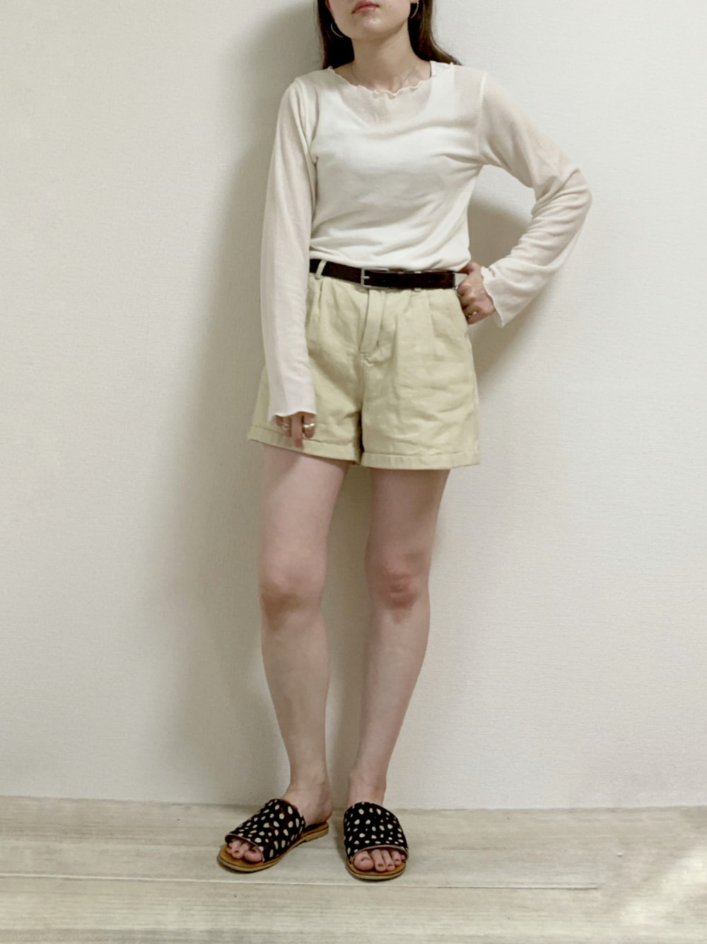甘めのトップスにハーフパンツとゴツめのベルト合わせてみました🍓✨