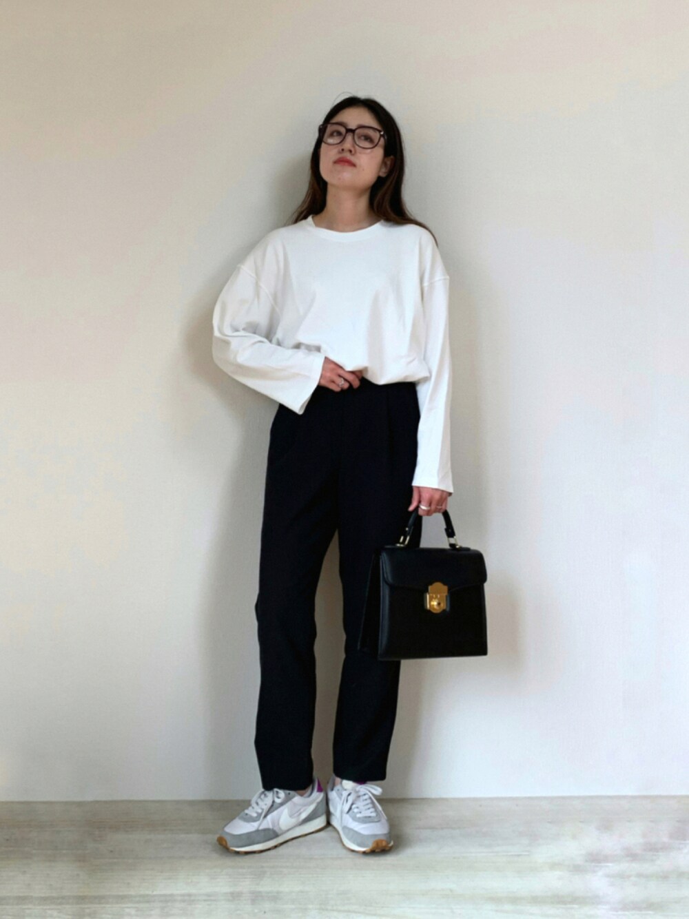 レザーシューズと迷ってやっぱりスニーカーで落ち着いたシンプルコーデ🤍