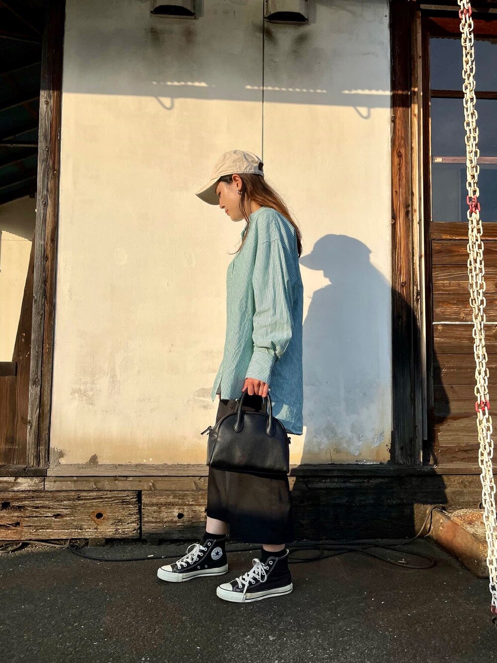 夕方に撮って見にくいですが📸 キャップかキャスケットか迷って、しっくりきたのがキャップだった🧢