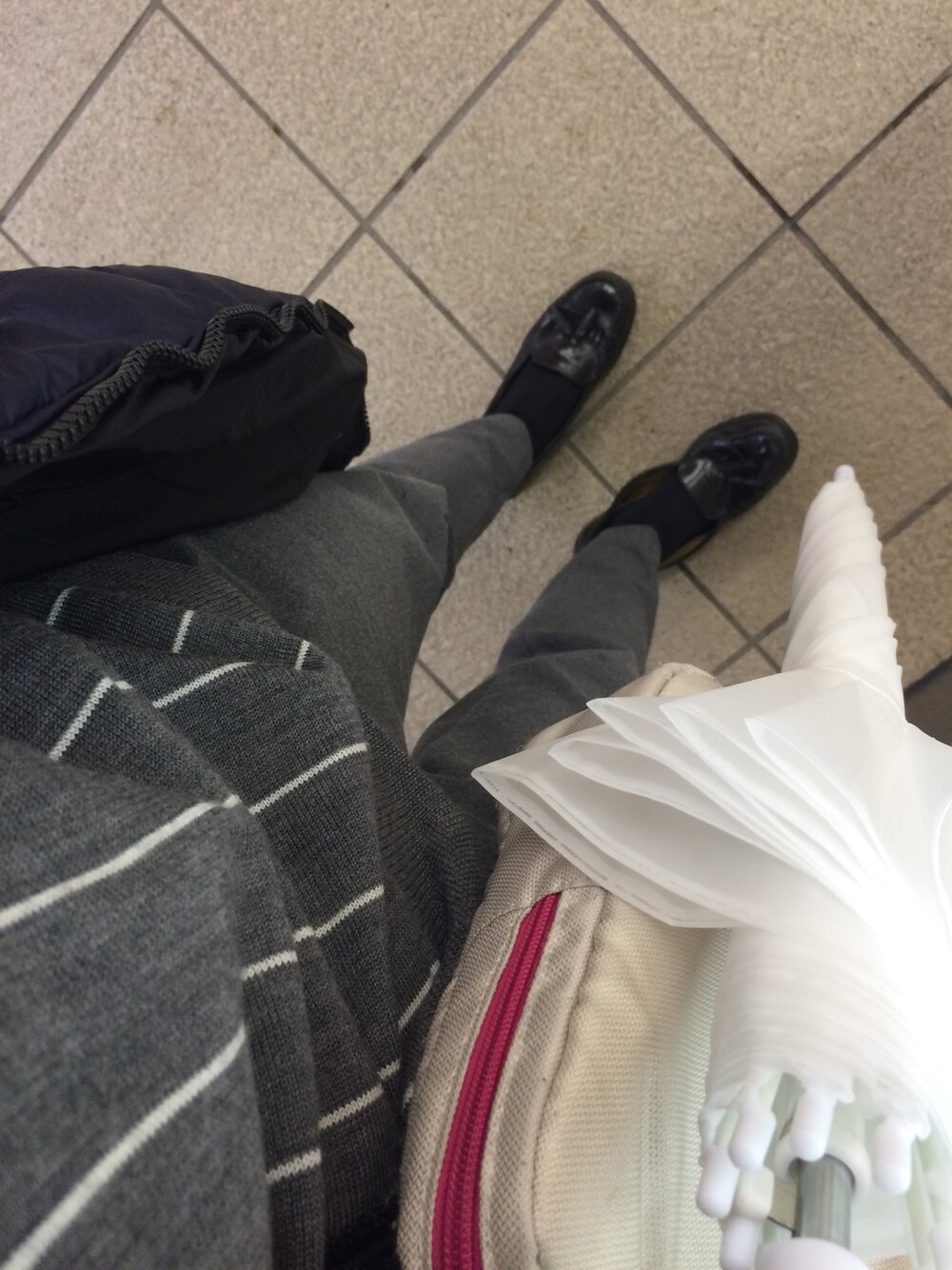 雨です。 こんな日に限って終日外出。 上下グレーって初挑戦。