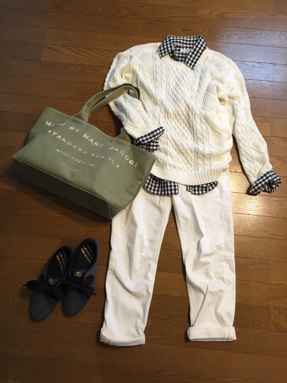 暖かい日。爽やかコーデw 暑がりには嬉しいコットン100%ニット。