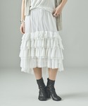 【サイズ感】 〈アウター〉 ゆったり。ステンカラー型のシングルカバーオール。よりリアルに近い技術で表現されたヴィンテージレザー。着丈は長めでスッキリとした身頃がポイントです。 〈スカート〉 ゆったり。ウエストゴムの楽ちんな着心地。前後差のある着丈なのでブーツ合わせや、パンツとのレイヤードもおすすめ◯ 【素材感】 〈アウター〉 レザー加工の歴史が長いレザーテックス社のヴィンテージフェイクレザーを使用。 〈スカート〉 綿100% インド製の細かいメッシュ状のコットンベース生地。サラッとした涼しい生地。フリルの重みがあるため、畳みで収納がオススメです◯
