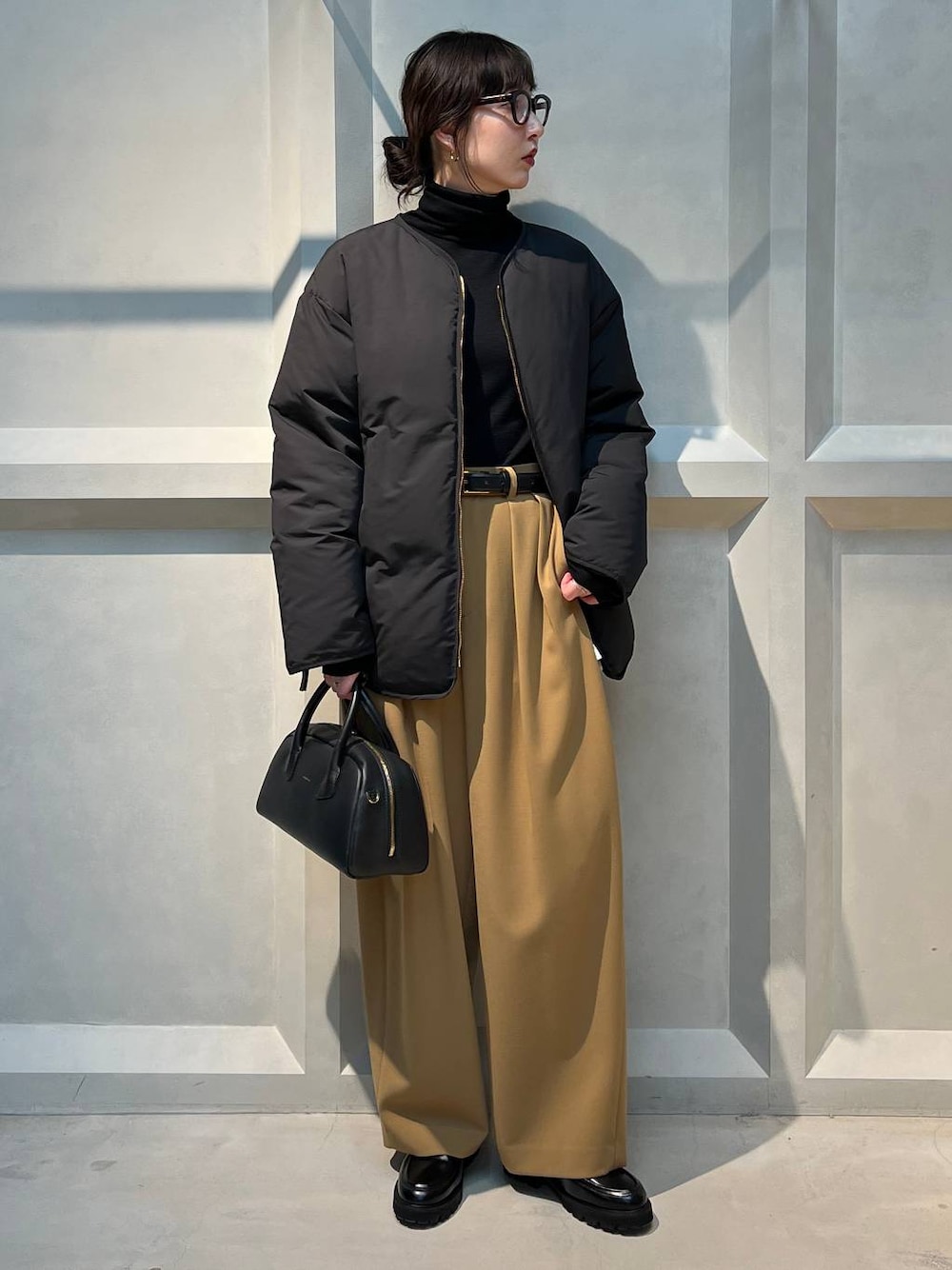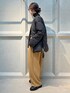 【サイズ感】 〈アウター〉 ゆったり。オーバーすぎない程よいゆとり感。サイドジップ付きなのでバランスが取りやすいショート丈。身長問わず着やすいサイズ感です。 〈パンツ〉 ゆったり。36サイズ着用。やや厚みのあるシューズと合わせてジャスト丈。ハイウエストで腰回りスッキリ。足のラインを拾わないユルっとしたシルエット。 【素材感】 〈アウター〉 ダックダウン90% フェザー10% 保温性バッチリのとても暖かいダウンです。カジュアルになりすぎないマットな表地。軽いコンパクトなダウンです。 〈パンツ〉 程よい厚みのある独特な張りと落ち感が特徴。縦横にストレッチの効いたストレスフリーな着心地。シワになりづらく、お家で洗えるのも嬉しいポイントです。