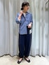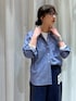 【サイズ感】 〈トップス〉 ややゆったり。さっと羽織るだけで自然に首後ろに抜け感をつくってくれる絶妙なシルエット。着丈は前後差があり、後ろはお尻が隠れる長さ。 【素材感】 〈トップス〉 綿100% ワッシャー加工を施したハリのある素材。高密度なタイプライターのシャンブレー生地。トラッドな雰囲気のあるオシャレな色味です。