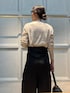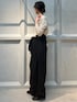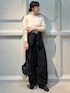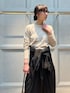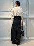 【サイズ感】 〈トップス〉 ややぴったりめ。体のラインを拾いすぎない程よいフィット感。重ね着もしやすいゆとりがあります。ジャケットのインナーなどにもオススメです。 〈パンツ〉 オールインワンを腰巻きでアレンジ。腰巻きで履くと着丈長め。ゆったりとした身体のラインを拾わないシルエット。 【素材感】 〈トップス〉 綿100% イタリアのエミリコットーニ社のイタリー系を使用。上品な薄さで、肌にあたりもサラッとした着心地。 〈パンツ〉 ナイロンとセルロース。リヨセルを高密度に打ち込んだ、とろみと光沢のある素材。シワになりにくく、お家で洗濯可。