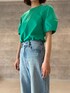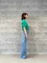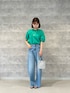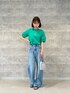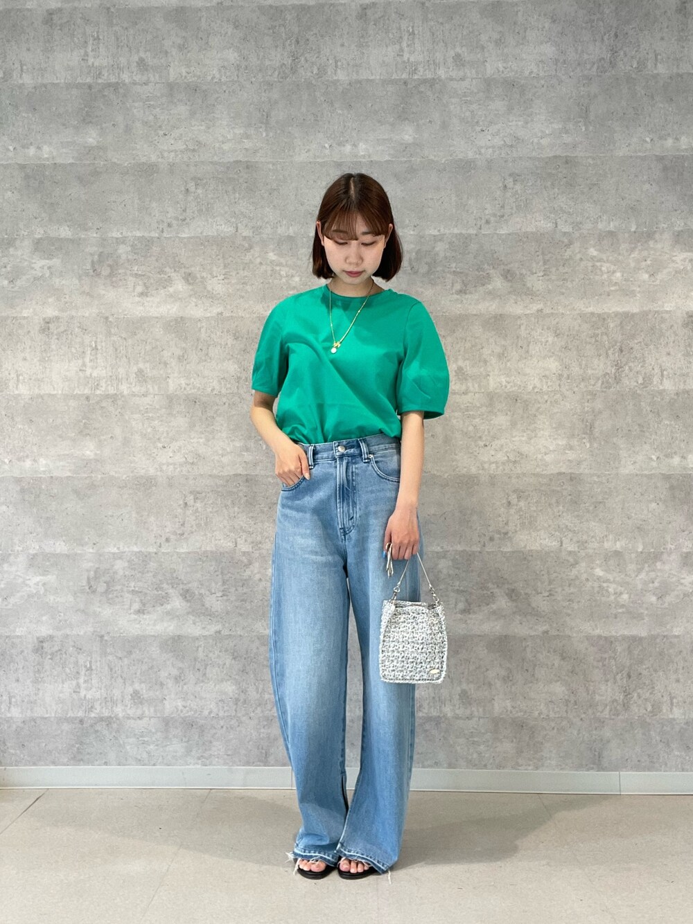 人気の5分袖プルオーバーから、 グリーンの新色を着てみました!! 丸みのある袖がとても可愛いく、 シンプルですが、 1枚で決まるアイテムです✨ デニムやメタリックバックを合わせて 夏らしいコーデを組んでみました!!