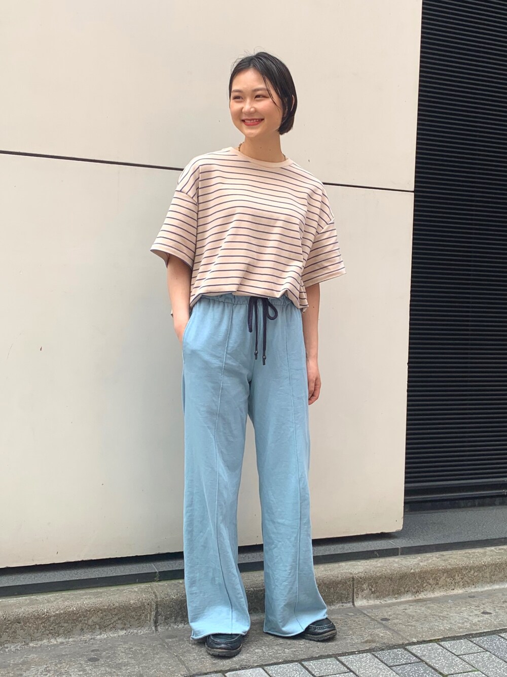 ボーダーの色味を拾ってボトムスはその色味に合うように合わせると統一感もでて可愛いです♡