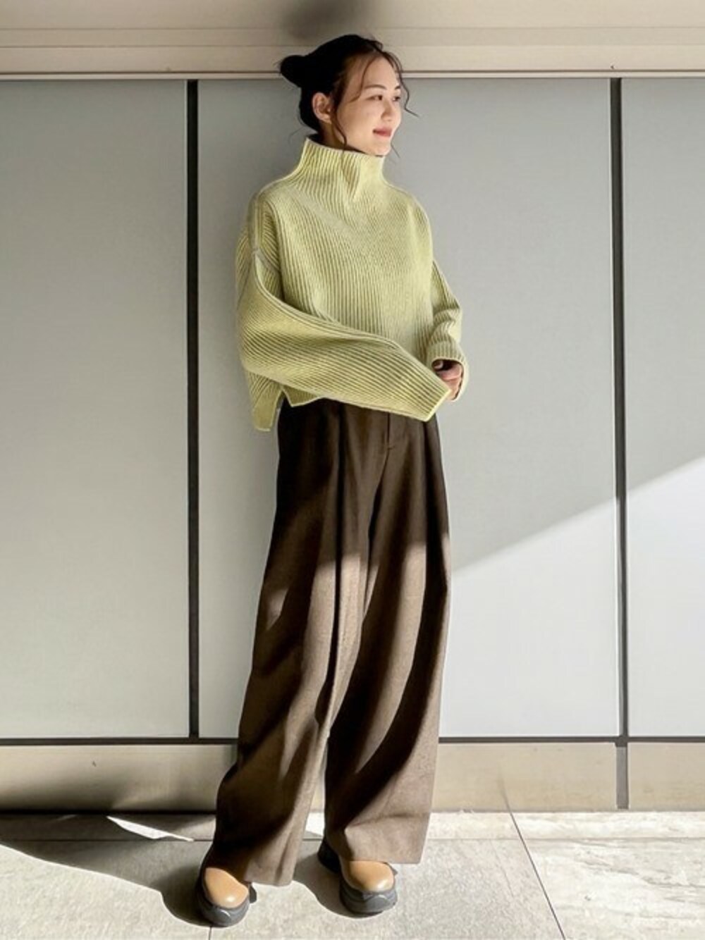 mizukiのニット/セーター「PLEATSリバーシブルニットプルオーバー」を使ったコーディネート