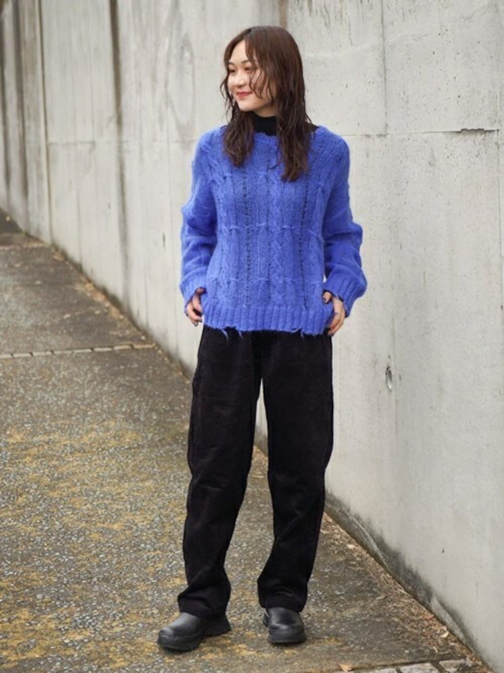 mizukiのニット/セーター「モヘヤウールケーブルプルオーバー」を使ったコーディネート