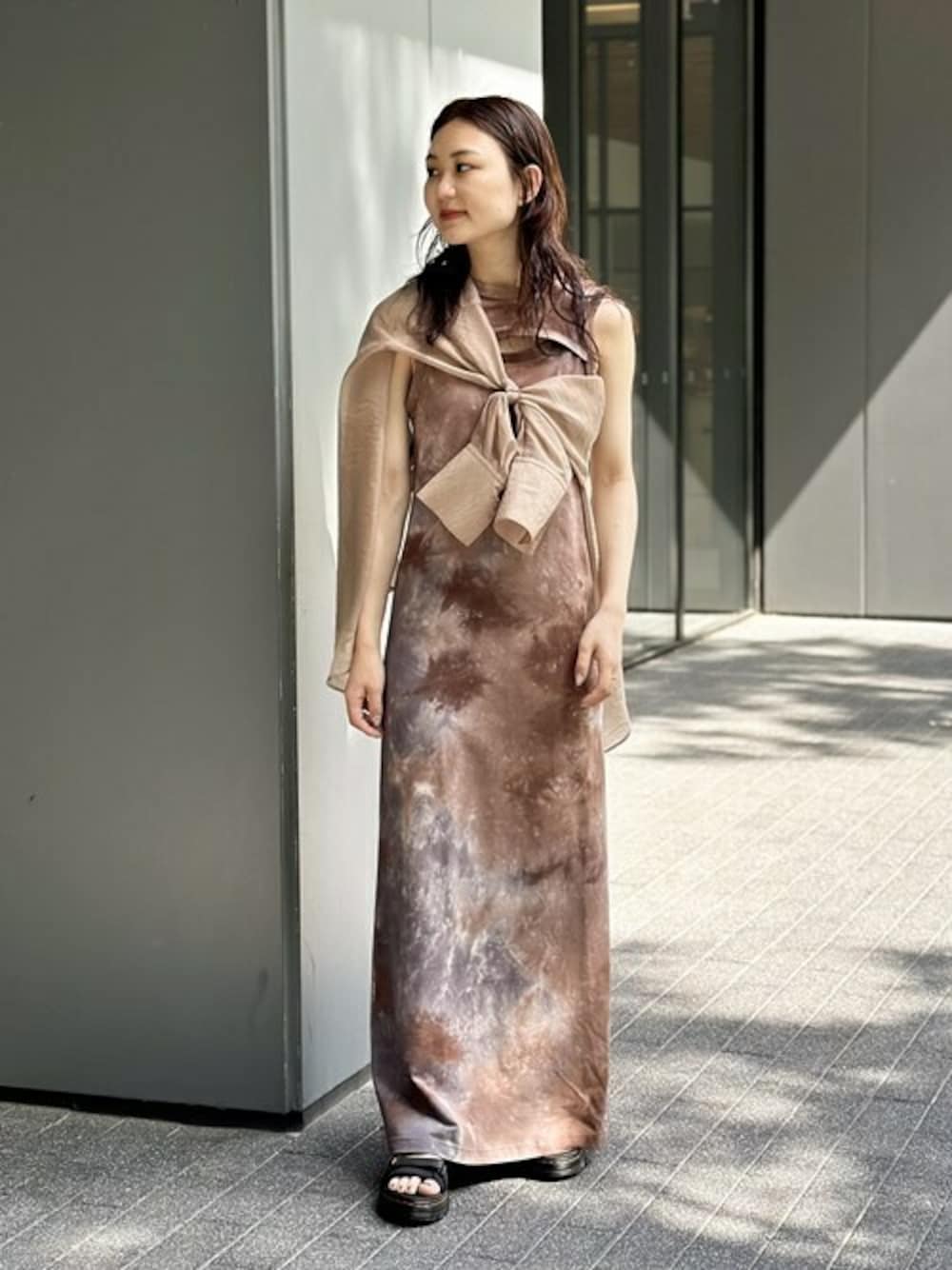 mizukiのワンピース「タイダイ2Way ホールマキシワンピース」を使ったコーディネート