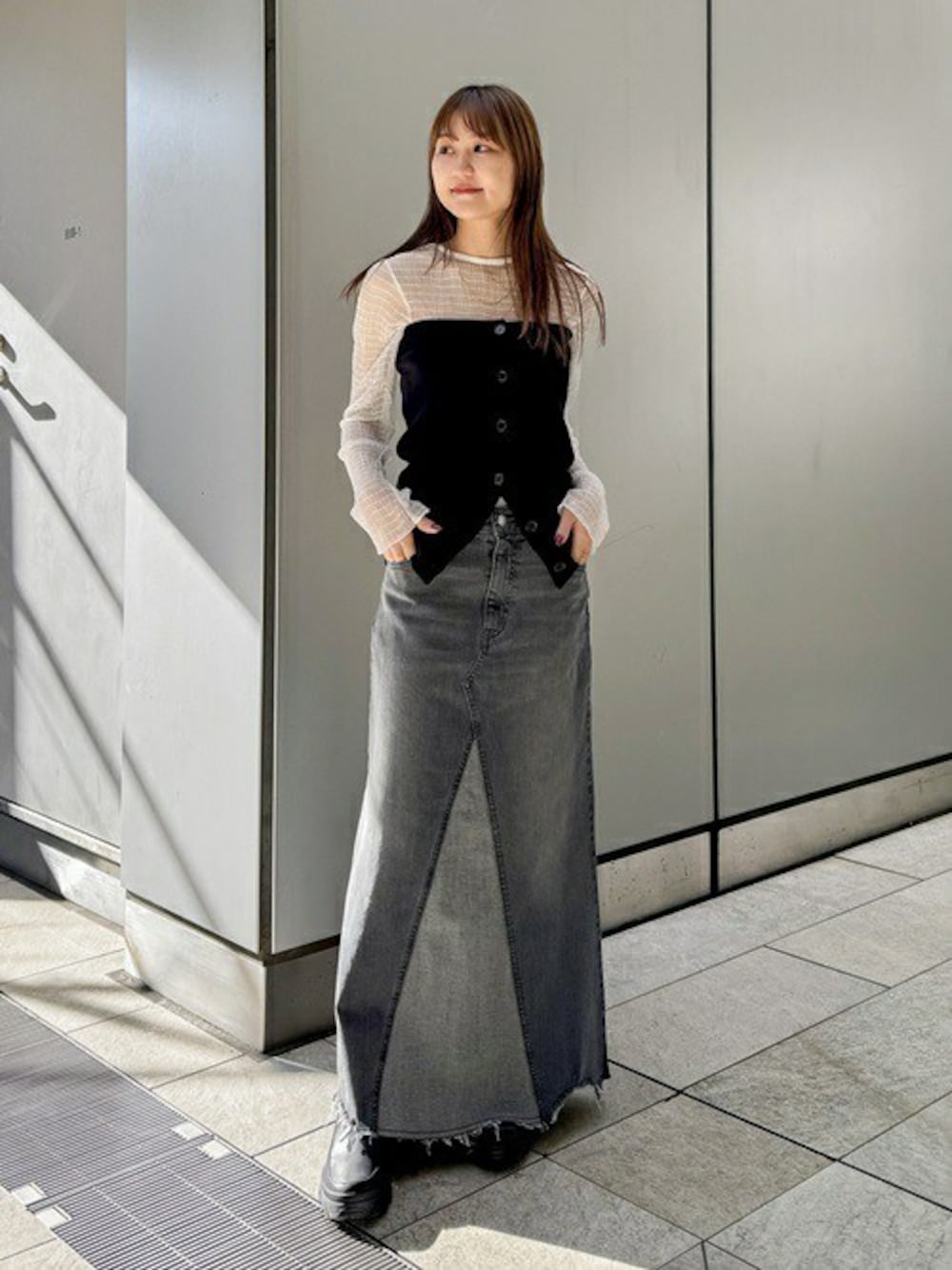 オンラインストア限定のニットベアトップ。 インナーを変えて長いシーズンで着回せるので、コーディネートの幅をぐっと広げてくれます。