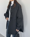 カジュアルで着やすい中綿ジャケットに、今季注目のプレッピー要素をトグル釦で用いたキルティングジャケット。 ふんわりとしたボリューム袖が女性らしい一枚です。