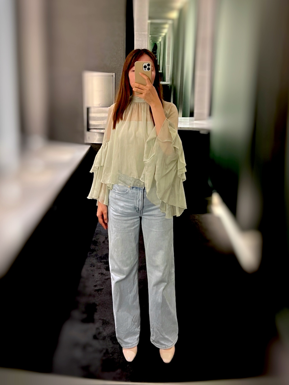 本当はセットアップなんだけど、単品使いも優秀! デニムと合わせると甘さ増し増しに🫶
