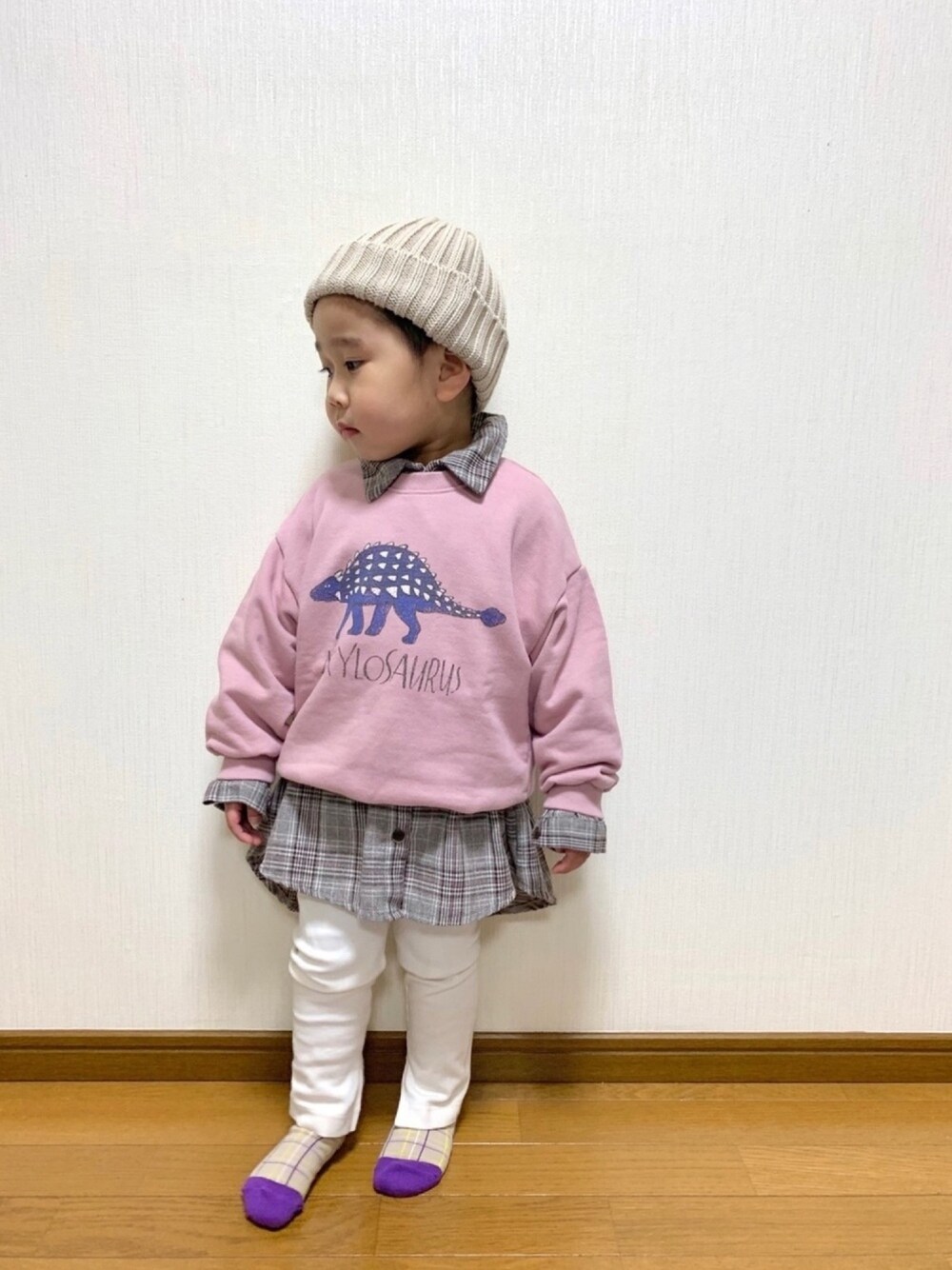 おはようございます! いいね、お気に入り ありがとうございます☆。.:*・゜ 20ss、春色の 恐竜さんスゥェットです! 絶妙に目付きが悪い 可愛いお顔です^^*