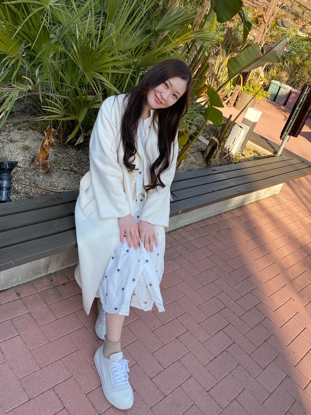 ホワイトコーデ🤍 白ってとっても可愛くて 着てるだけでぱーっと明るい気分に なれる気がしちゃう☺️ コートは昨年購入したもの。 中の小花柄のシャツワンピがとても可愛くて 春夏着れちゃう😻 スニーカーはZARAのセールで3990円になってたの!嬉しいい!