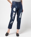 mkchiのデニムパンツ「【mystic】ダメージデニムテーパード」を使ったコーディネート