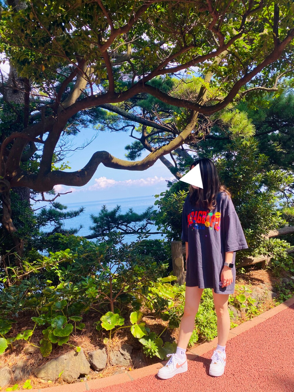 おはよございますヾ(ゝ∀・。)ノ゛ 久しぶりの投稿です🕊 もう涼しくなってきて夏も終盤☆*° 夏らしい格好して旅行して来ました🥰 大きめのダボTシャツをワンピース風に! シンプルなコーデでした⸜( ॑꒳ ॑ )⸝