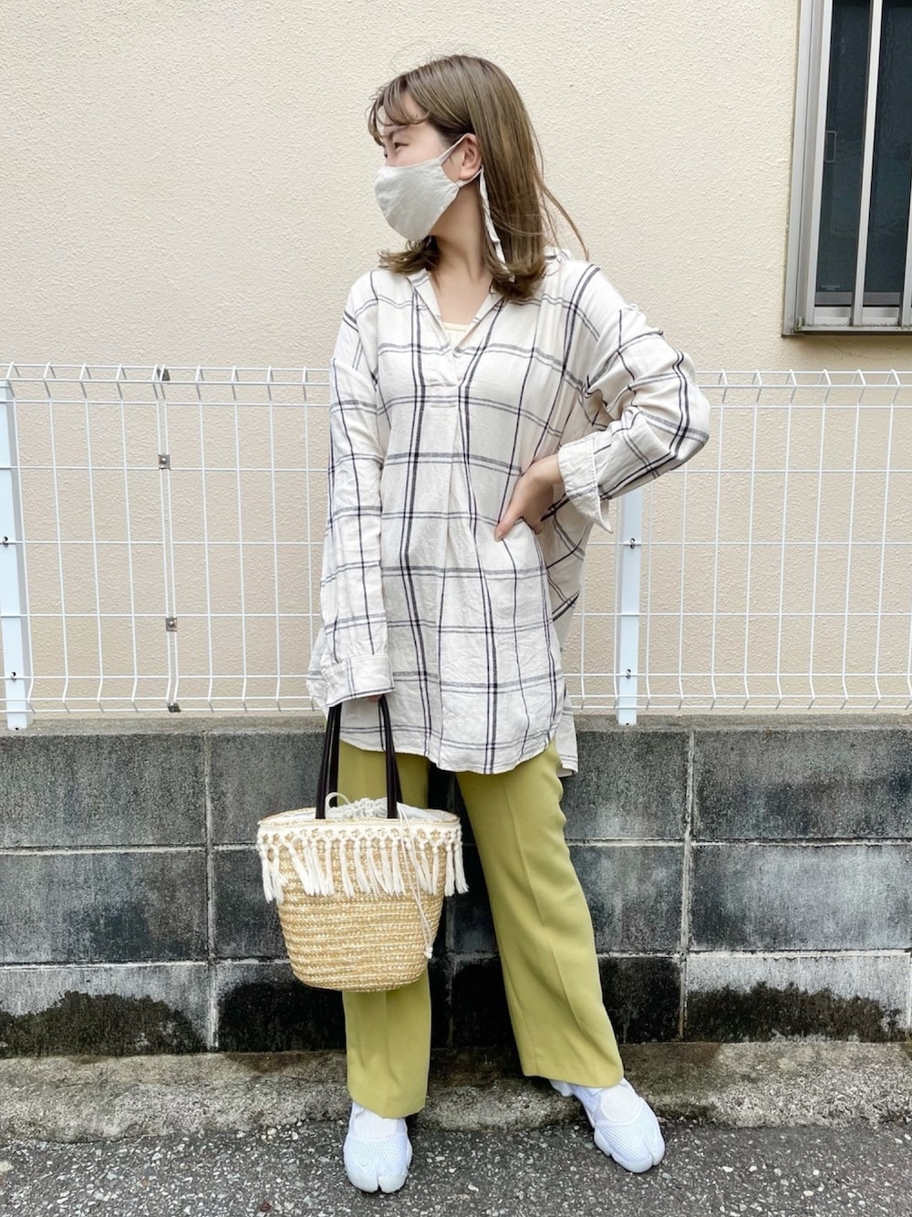 チェック×カラーパンツ♡ マスクとエアリフトがお気に入りです!!