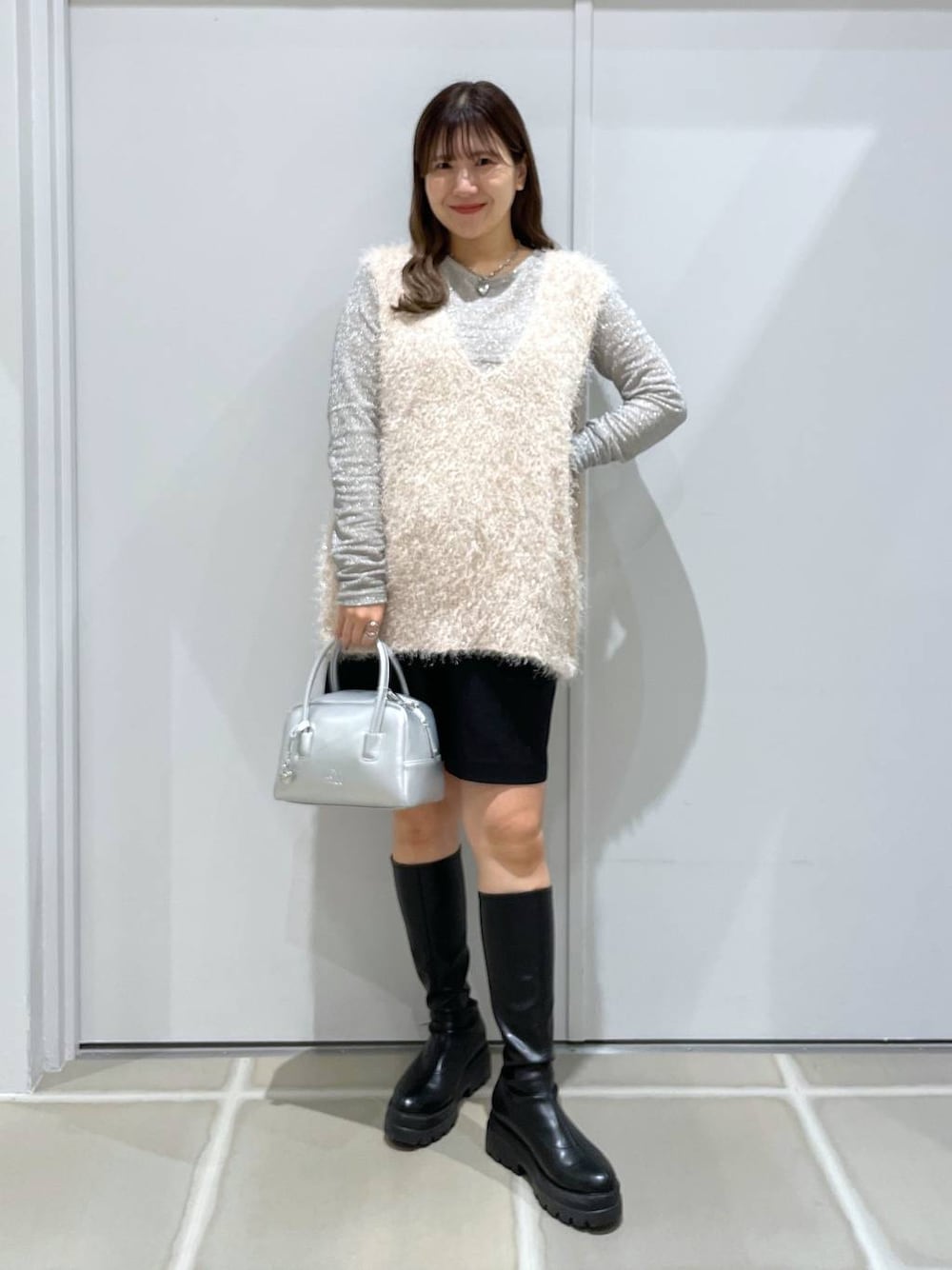 ラメのキラキラ感が可愛いニットベスト♡ コーデの主役にぴったりで、カジュアルにもきれいめにもシーンを問わず使えます! ショーパンは、短すぎないので大人も履きやすい丈感です!厚底ブーツ合わせならさらに体型カバーもできます♡ 他にも動画やコーデたくさん載せています! 是非フォローしてご覧ください♡