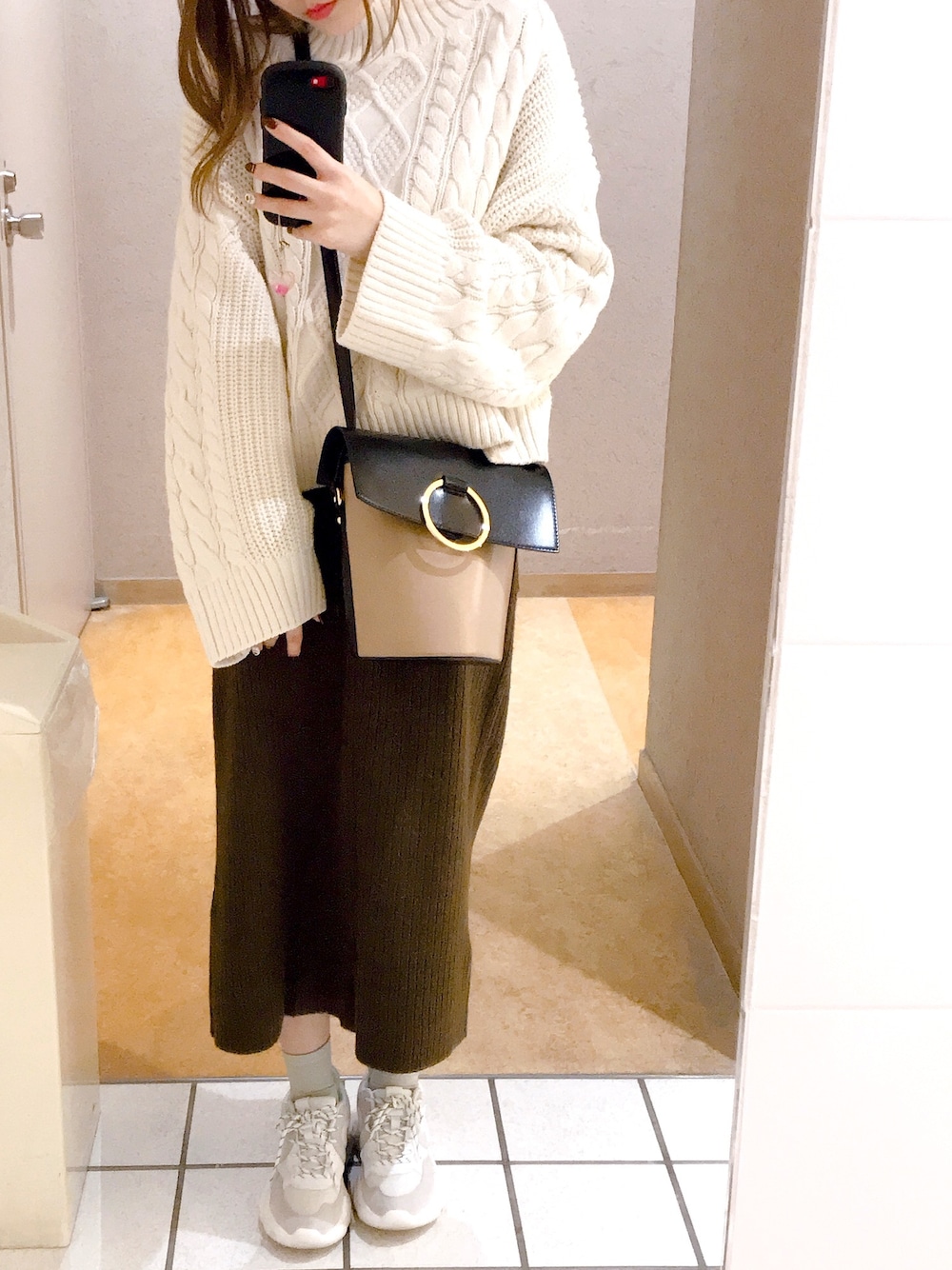 ぽりみのニット/セーター「5Gケーブルハイネックショートニット/848057」を使ったコーディネート