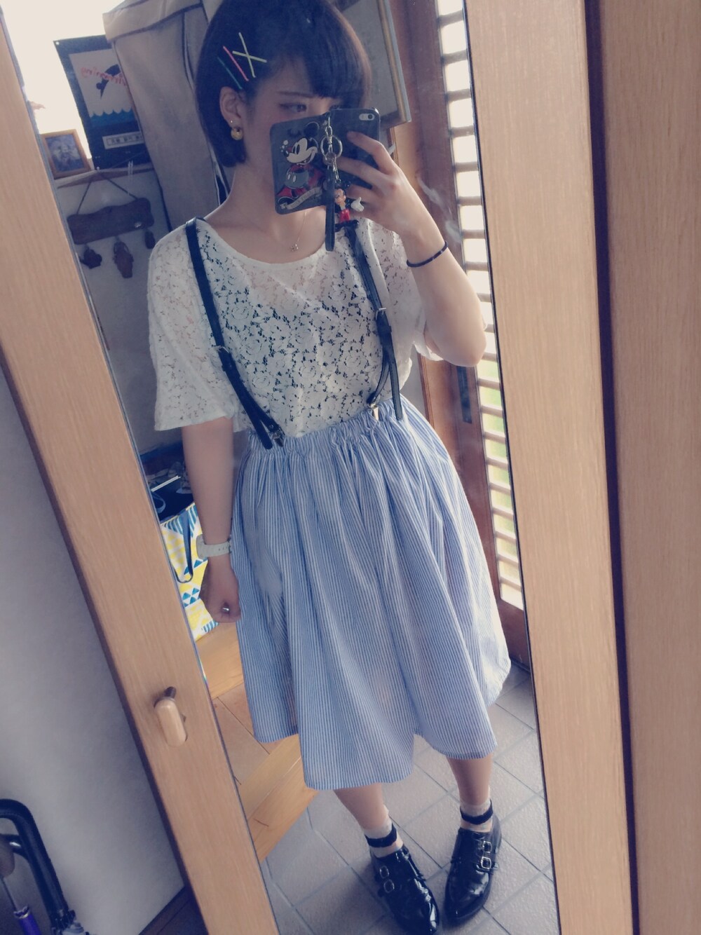 いつの日かの。 手作りスカート。 髪が短い。切りたい切りたい