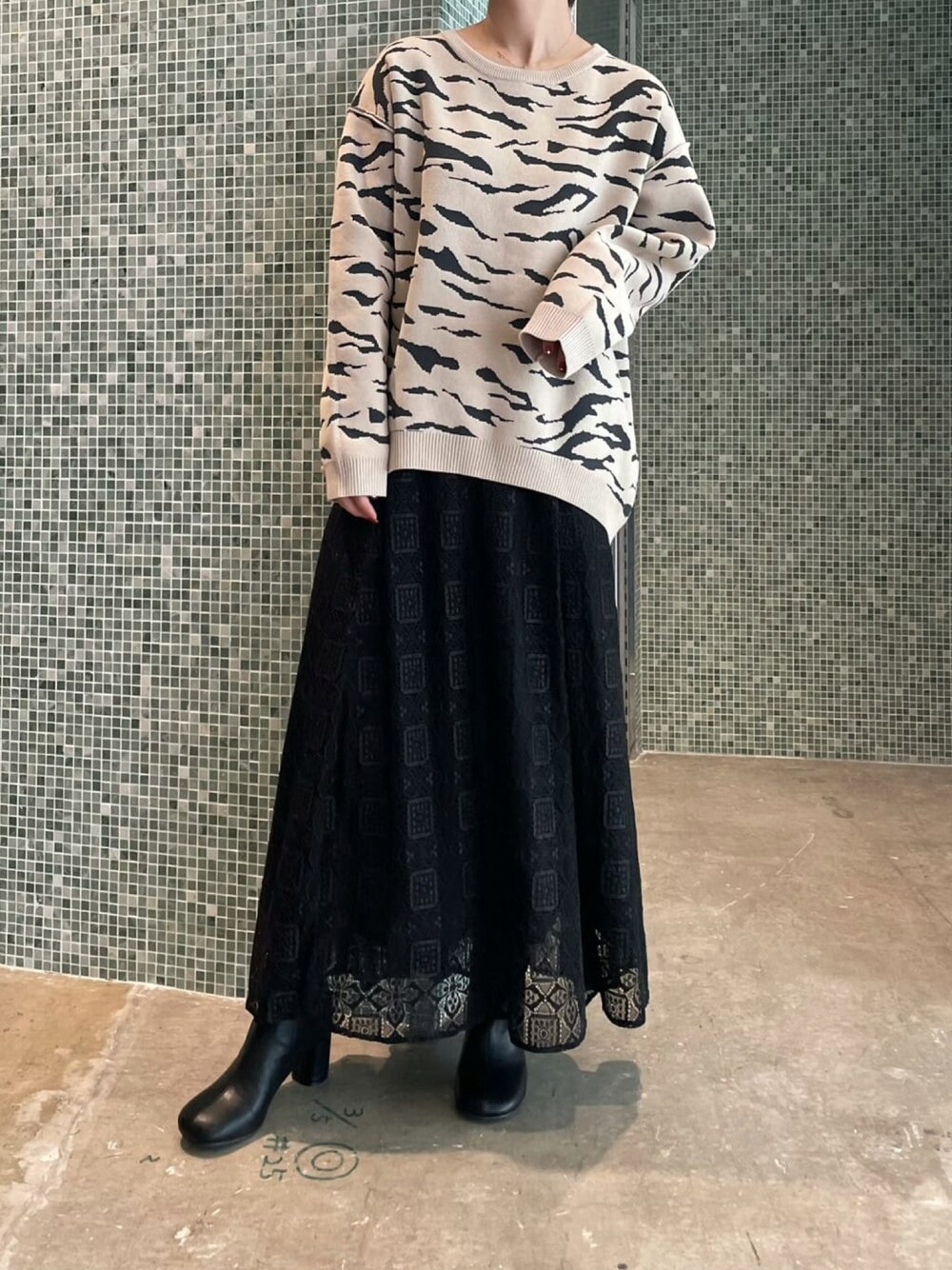 mkkkis(W------room)のニット/セーター「ゼブラ柄ジャガードプルオーバー」を使ったコーディネート