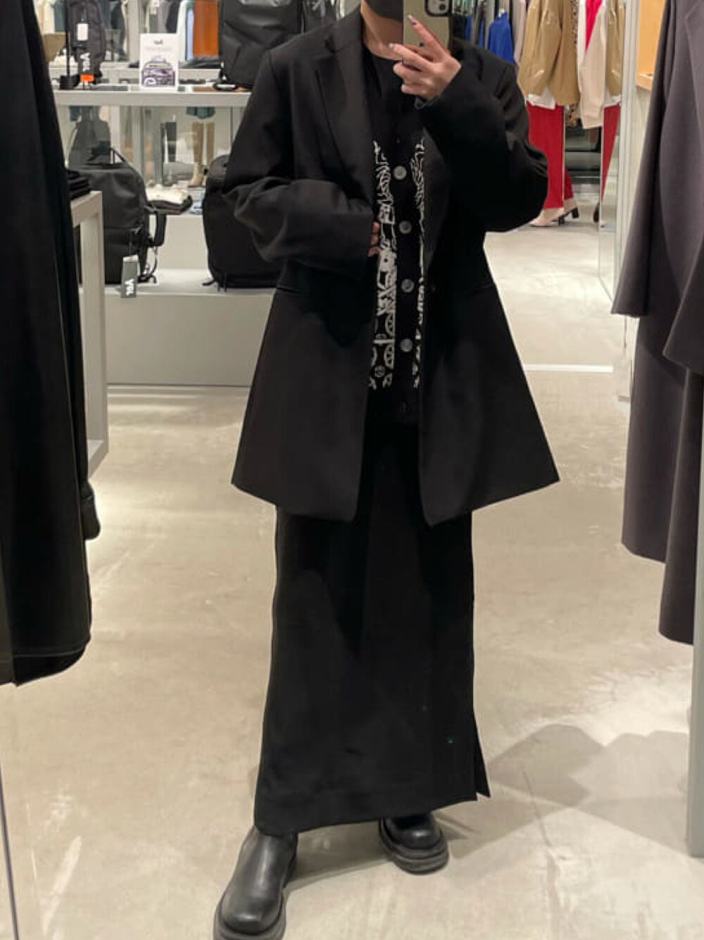 インナーにカーディガンを仕込んでレイヤードしました。