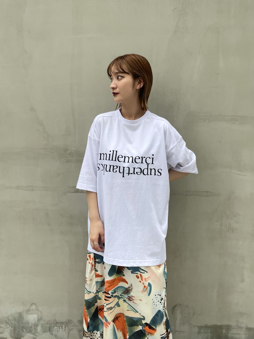 mkkkis(W------room)のTシャツ/カットソー「【SUPERTHANKS】フロントプリントビッグシルエットTシャツ」を使ったコーディネート