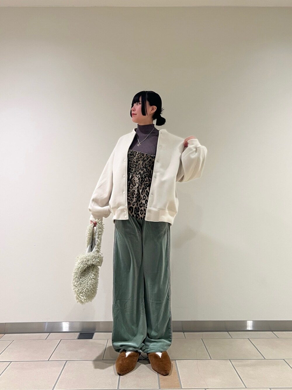 大好きなアイテムを詰め込んだコーデです!! アニマル柄のビスチェがコーデのアクセントになってとても可愛いです(๑o̴̶̷᷄﹏o̴̶̷̥᷅๑)💓 ベロアのパンツにラインが入っているので足長効果ありです!○