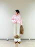 ピンクのスウェットが春っぽくてとても可愛いです⸜ 🎀 ⸝ クロップド丈なので、1枚でもレイヤードしても可愛いです!!! ターンバックデザインのパンツは足元に目がひかれるので可愛いシューズと合わせるのが好きです♡˶'ᵕ'˶♡