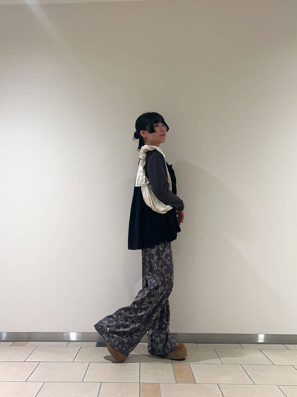 ドッキングデザインのロンTは、1枚で決まるのでとても便利なアイテムです〇 落ち着いた色なので、柄のパンツをアクセントとして合わせて全体的に重たくなりすぎないようにしました!𖤐 ̖́- パンツはかなりゆったりめなのでトップスインも出来ますし、細めのベルトなどを合わせるのも〇です!!