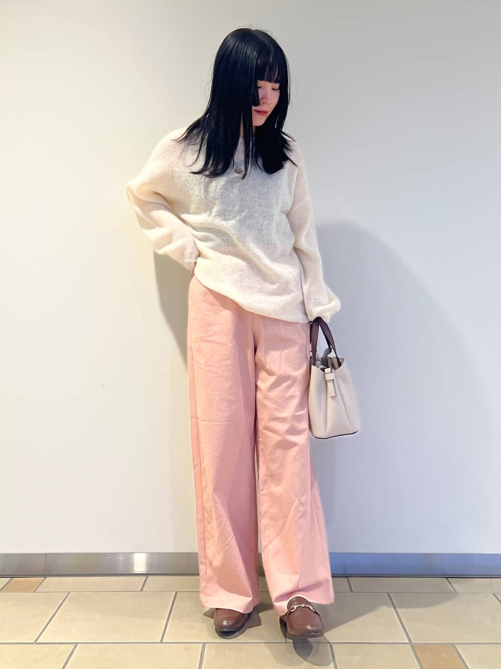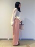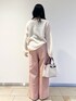 春カラーで可愛いピンクのパンツです( ' ' )♡ シアーのニットトップスと合わせて春っぽいコーデにしました𖤐 ̖́- ウエストがゴムになっており、腰周りにゆとりがあるのでストレスフリーな着心地です! スニーカーとも相性が良くカジュアルコーデに、 ローファーやパンプスを合わせてキレイめなコーデに、どんなジャンルでも合わせやすいパンツです( ‘-^ )b
