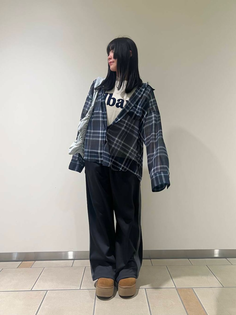 シアー感たっぷりなチェックシャツです𖤐 ̖́- 風通しの良いシャツなので春夏にぴったりデス👍 インナーにはさらっと肌触りの良い半袖のニットを着ています! 接触冷感なので夏には1枚で着れますし、 今時期だとインナーとしても着れるアイテムです! ラインパンツと合わせてラフなコーデにしました!