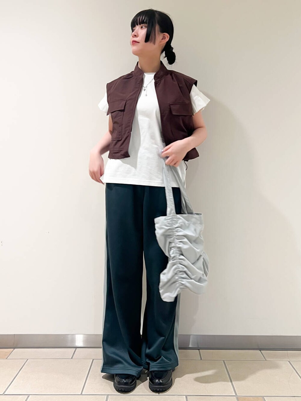 ナイロンベストとラインパンツでスポーティーに𖤐 ̖́- 女の子感も出したかったのでオリガミタックデザインの袖が可愛いトップスを合わせました! ベストは裾を絞れてスタイルアップするのでどの角度からみても可愛いです!!𖤐 ワンピースの上から羽織るだけでも雰囲気変わるのでぜひお試しください!!