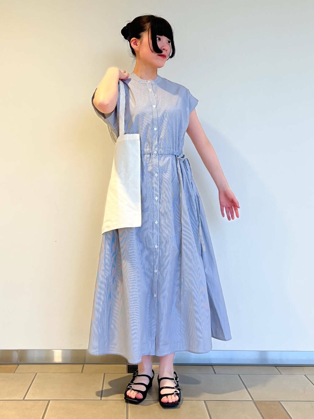 1枚でオシャレなストライプワンピースです𖤐 ̖́- ウエストはサイドのリボンで調節でき、 とてもスタイルアップします(*^^*)⟡.·*. 裾が広がりすぎない形なのですっきり見えます! サンダルにもスニーカーにも合わせやすいので、 プライベートにも通学通勤の時にも着やすいアイテムです!
