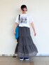 スパンコールベスト×スカートセット着回し 𖤐②日目𖤐 ̖́- 今日はセットのスカートとプリントTシャツのコーデです!! カジュアルなTシャツとも合わせやすいので通学用にも着やすいです! ふんわりしたスカートなので甘めカジュアルな雰囲気です!🤍