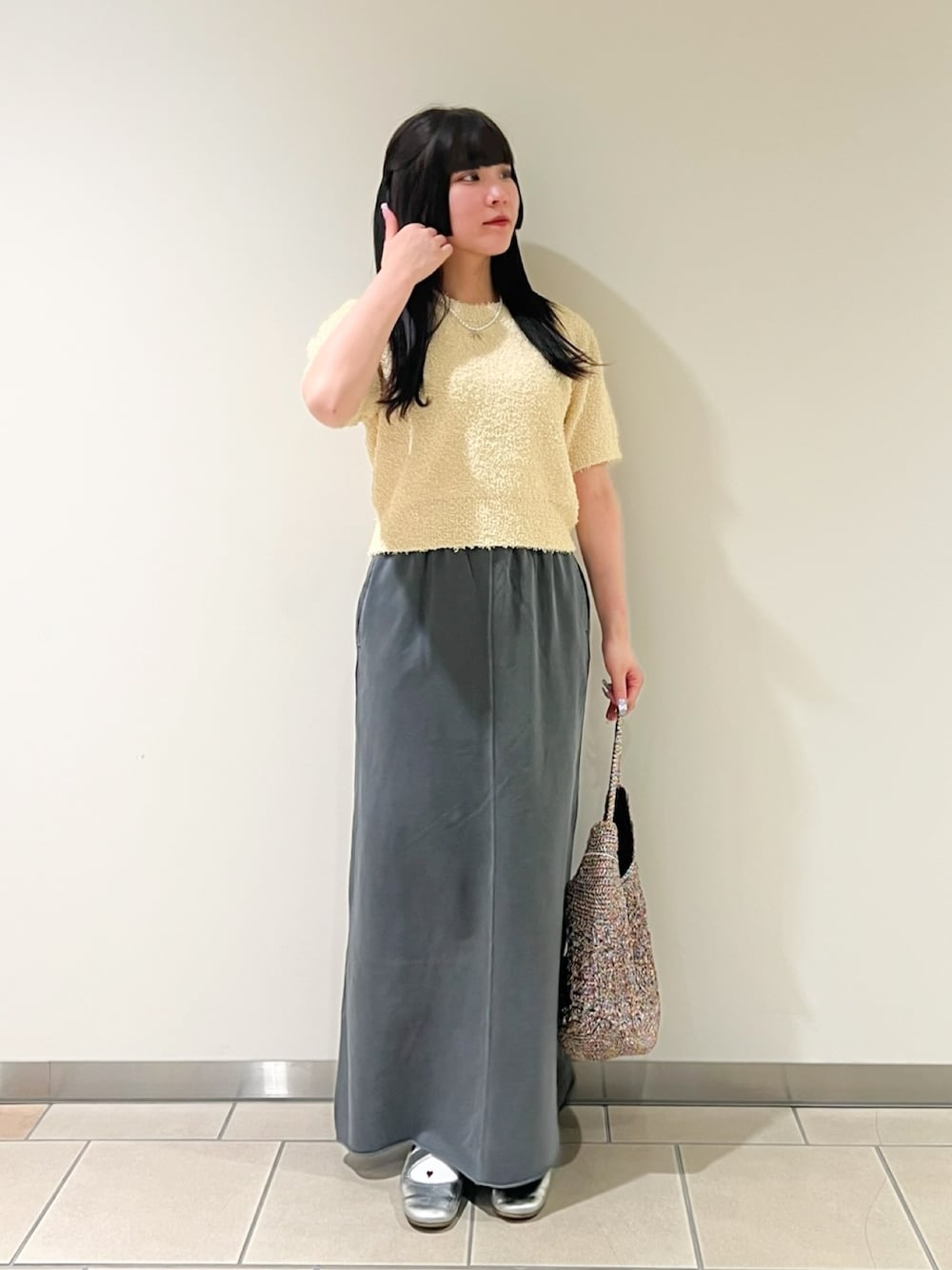 𖤐KIRA𖤐 (warehouse 三井アウトレットパーク札幌北広島)のスカート「ピグメントスウェットロングスカート」を使ったコーディネート