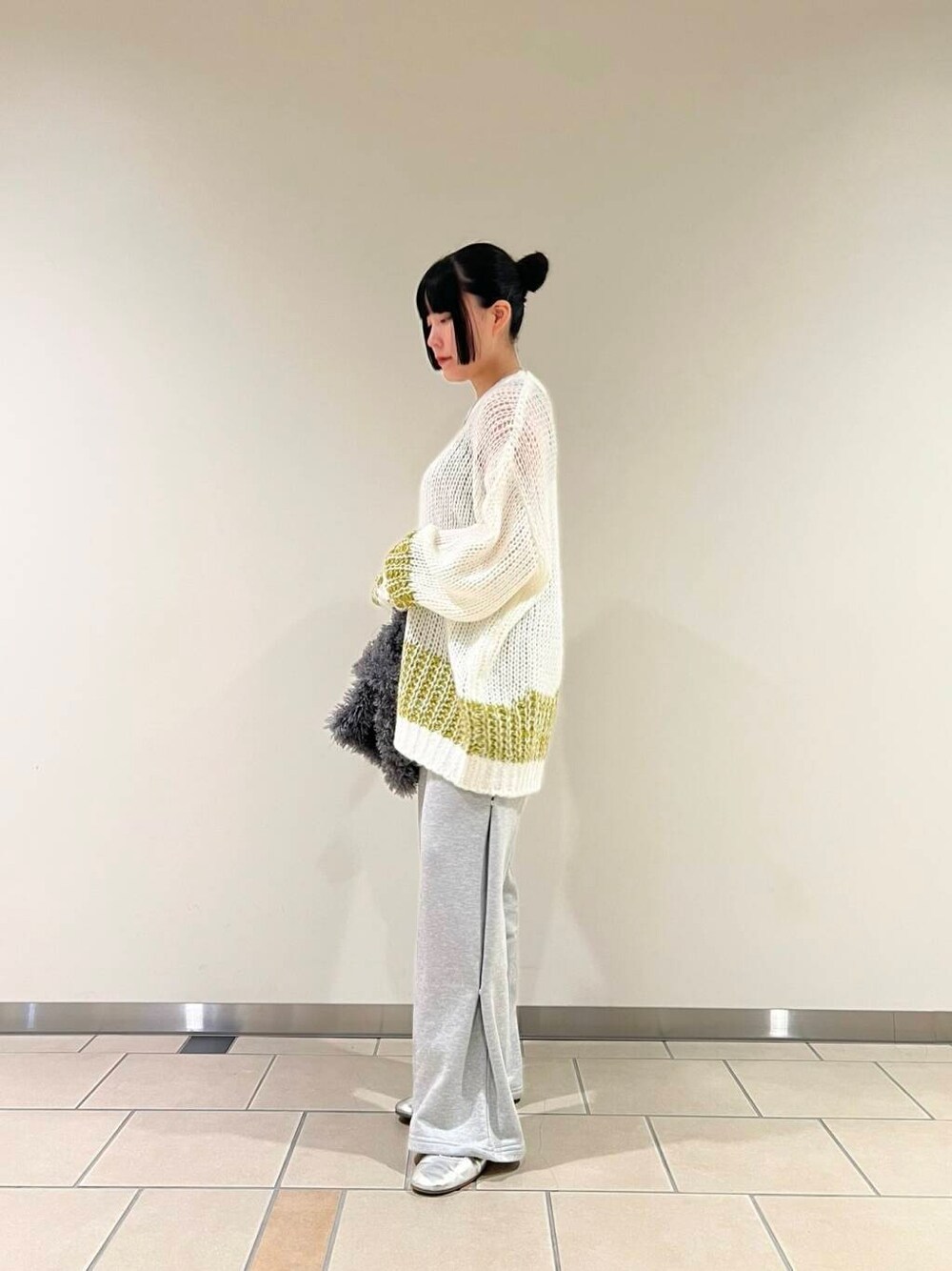 ゆったーりしたい日のコーデです! スウェットはしっかり丈長めなので厚底と合わせても可愛いと思います!🤍 もこもこバッグと合わせて秋っぽくしました★