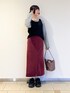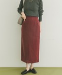 存在感抜群なチェリーカラーのスカートです🍒🤍 Iラインシルエットですっきり見えなのと、 後ろがゴムなので履きやすいです! 裏地付きなので透け感もなく、秋らしい生地感のスカートです!