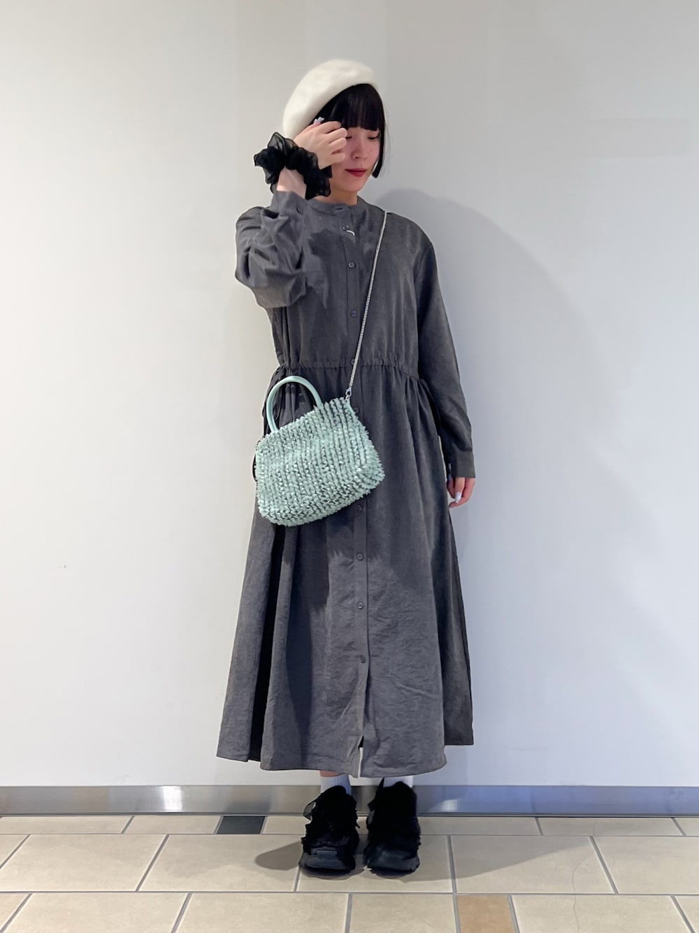 𖤐KIRA𖤐 (warehouse 三井アウトレットパーク札幌北広島)のワンピース「『イージーケア』ウエストギャザーロングスリーブワンピース」を使ったコーディネート