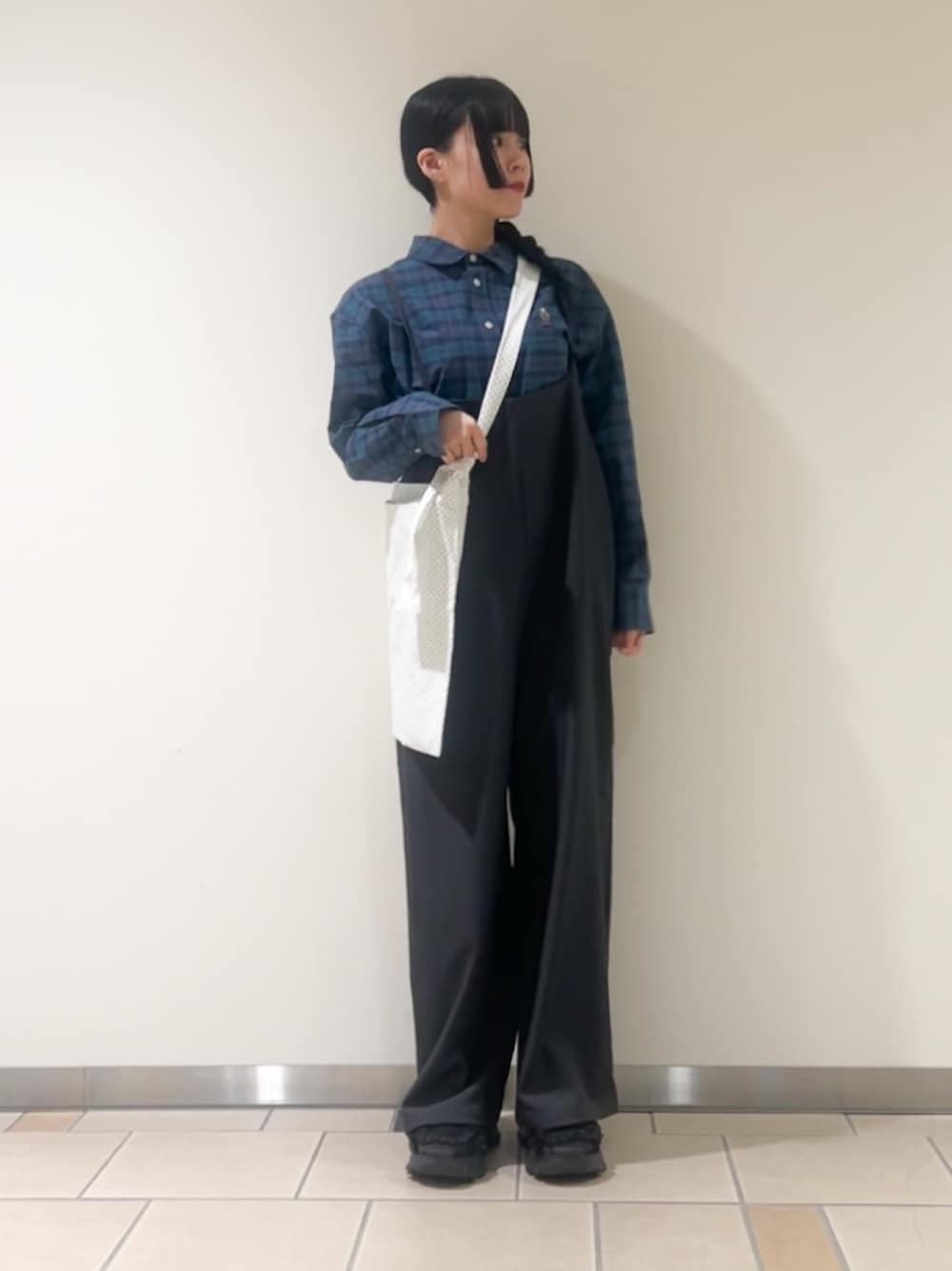 ワンポイントが可愛いシャツはメンズアイテムです! Mサイズ着用でゆるっと着れます!! グリーンのチェックが秋冬っぽくて可愛いです( ܸ-⩊- ܸ)💚 ルーズ感のあるサロペットは長さ調節可能で、 柔らかい生地で着心地も良いです!!◎