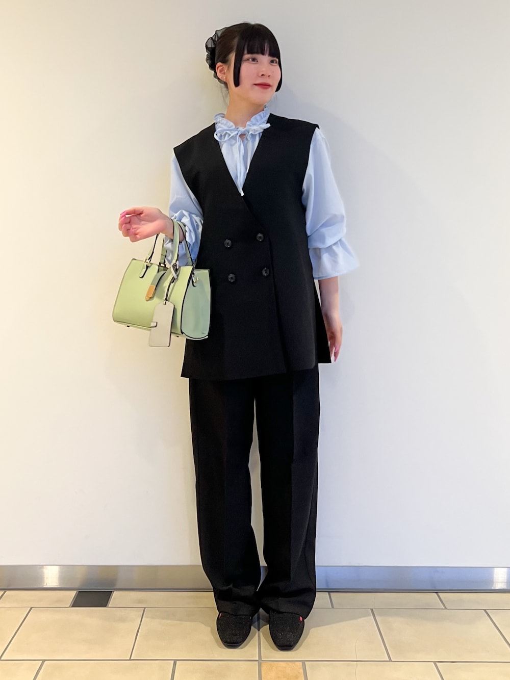 ジレとパンツのセットアイテムです! それぞれ別のアイテムとも合わせて着れるので、様々なシーンで活躍します💡 インナーのブラウスは、フリルがアクセントになりとても可愛いです♡ ̖́- 店頭でも人気組み合わせで、春に向けてセットで着ていただくのがおすすめです^^♡